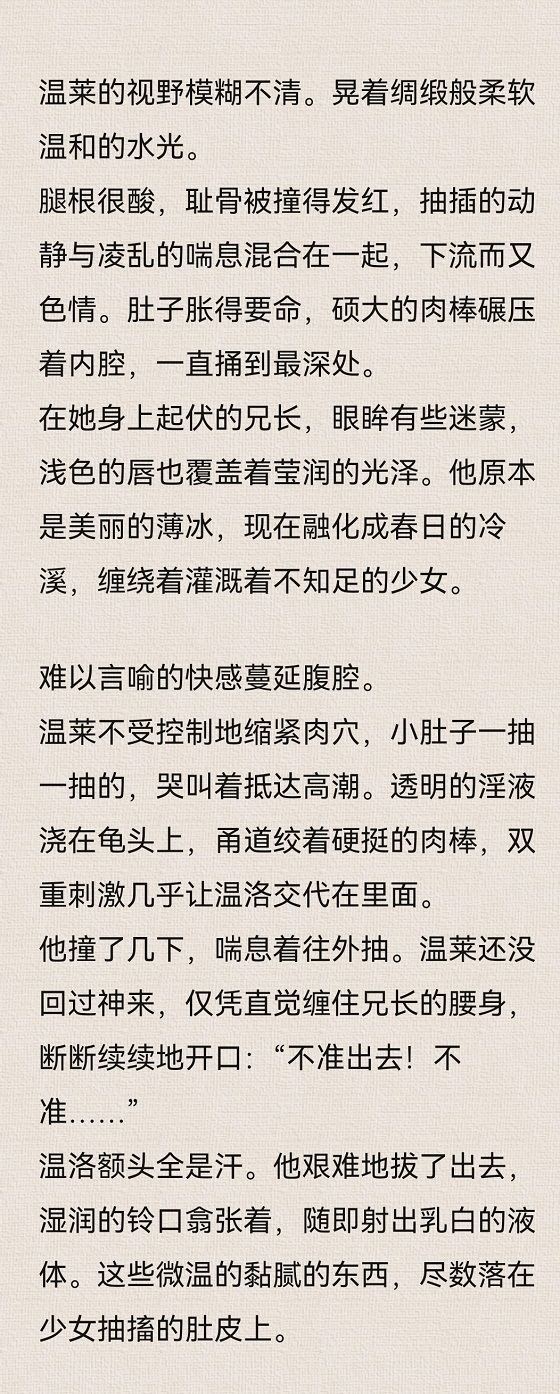 温莱狠心往下坐,坐到最深处,失神地喘了一会儿,才扶住温洛汗湿的胸膛。