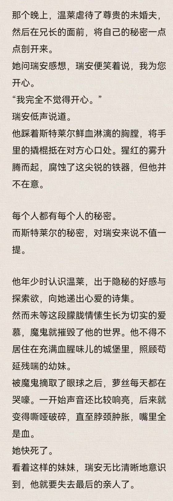 “只要你能坚持半个钟头不求饶,我就引荐你见教廷那位大魔导师。”对方说,“也许他能救治你的妹妹呢,对吧?”