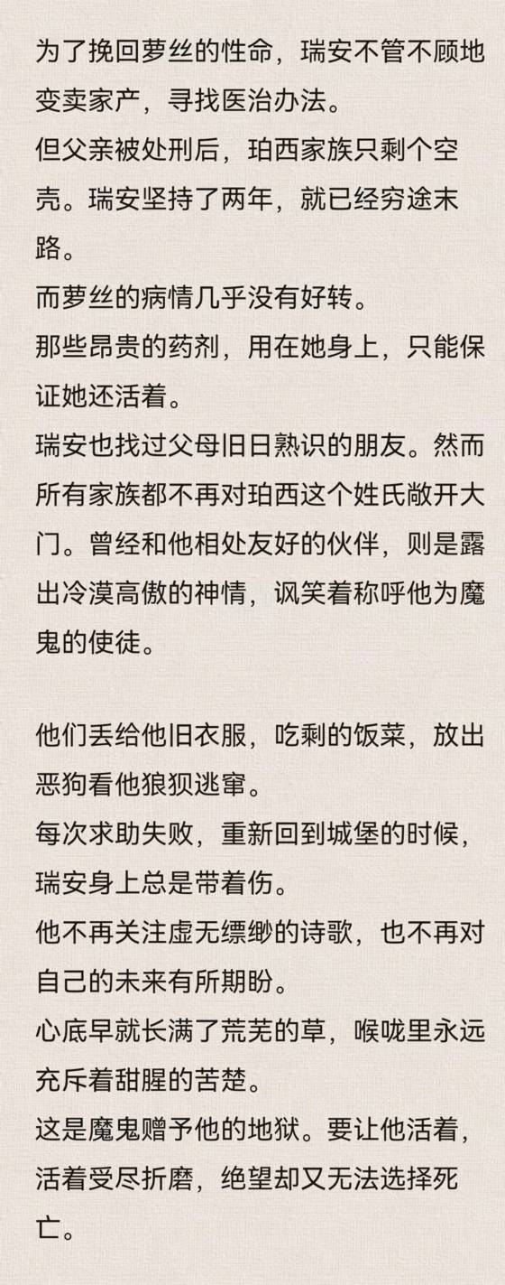 他的手腕被粗糙的绳索拽得疼痛难忍,扑咬的疯狗扯落了皮鞋,又撕开小腿的肉。整洁体面的衣服逐渐成了一堆沾血的破烂,而他曾经的朋友们坐在树荫里谈笑闲聊,偶尔将带血的生肉砸在他身上。