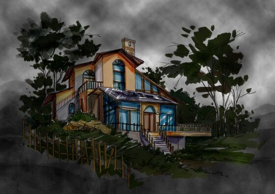 旅馆用篱笆和周围的黑雾画出界限,在黑暗世界中格外显眼。
